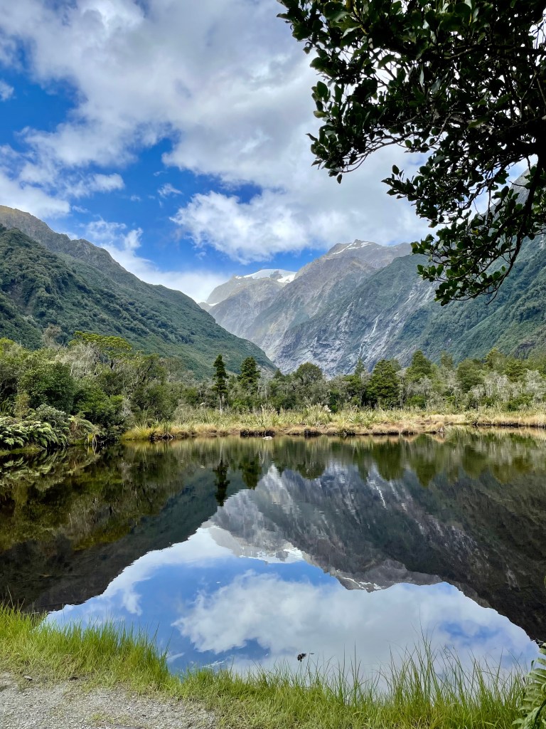 Beautiful reflective views of the glacier valley and mountains at Peter’s Pool.