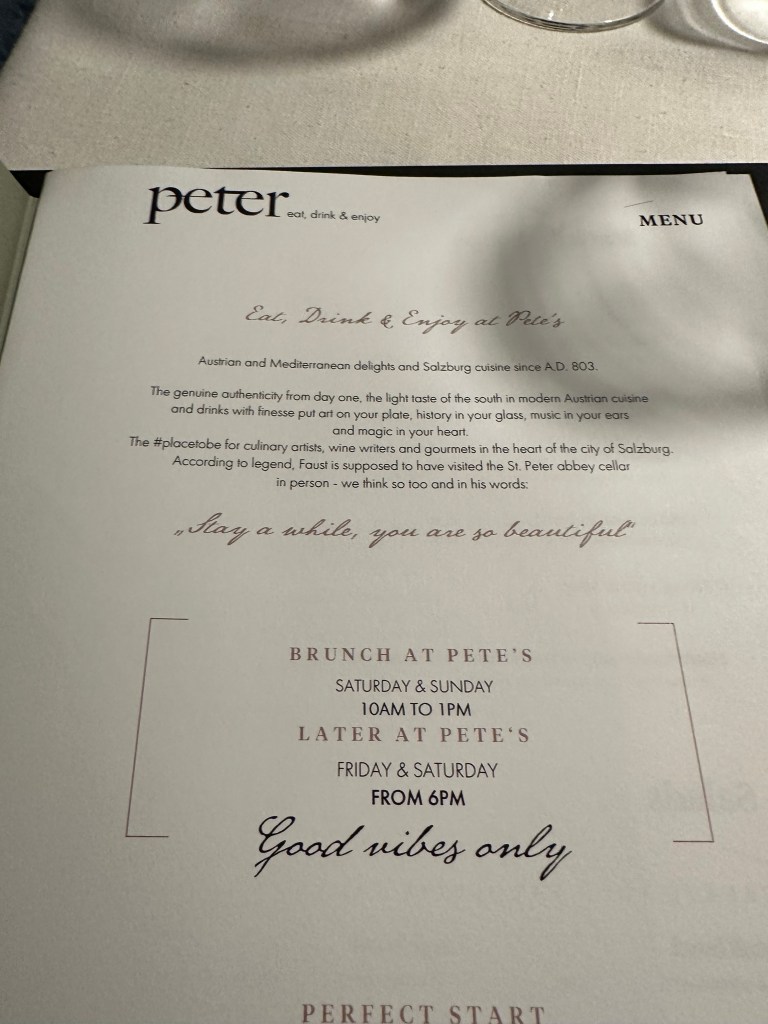 For dinner we had reservations at St. Peter. Tucked in on the rock hillside, this restaurant has been here since 803 A.D. and was the perfect location for our last night in Salzburg!