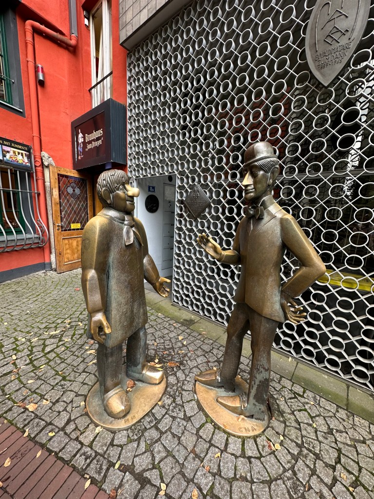 We took a stroll through the old part of Cologne and met these two guys. Tünnes annd Schäl. These characters were invented by Johann Christoph Winter who owned a puppet theatre. The characters have been memorialized in these bronze statues which can be found across from the great St. Martin Church. If you ever visit the city and find Tünnes and Schäl don’t forget to rub their noises for good luck!