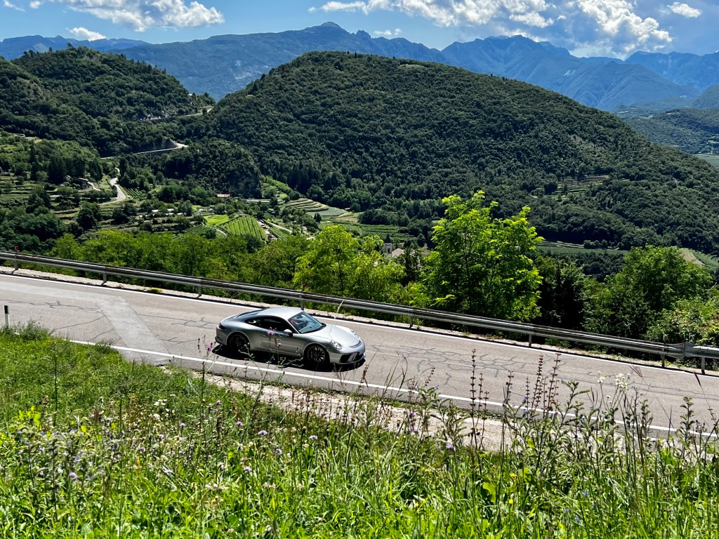 But wait, we can’t stop before we talk about the whole purpose of our trip over the last week. The drive through the Alps in 2 amazing sports cars! This was truly a once in a lifetime adventure. The fun started immediately on the German Autoban. Although disappearing over the last few years, there are still sections of the Autoban that have no speed limit. Nothing gets the blood pumping like pushing the accelerator to the floor in a Porsche 911. We hit a top speed of about 224 KM/Hr which is about 140 miles per hour! The drive through Austria was beautiful, but the majestic Mountain View’s started as we made our way into Italy. Over the next 3 days we navigated snow capped mountains, rolling hills, and amazing switchback roads along the mountain side. This was one of the most amazing drives we have ever been on.