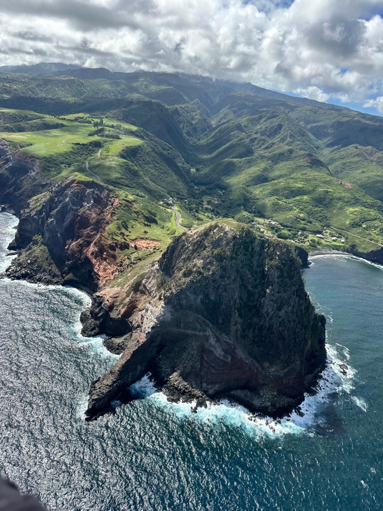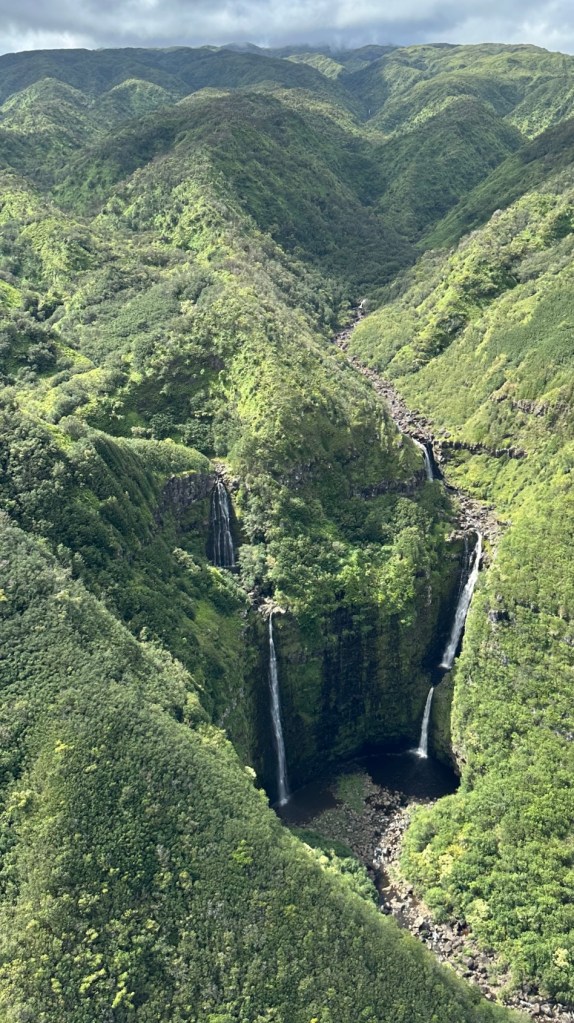 Pete initially was a little uneasy about the open door part so he opted to sit in the middle(next to the pilot) and I sat on the edge. After the ride Pete wishes he had opted to sit near the open door. We got to view the waterfalls that are in the opening scene of Jurassic Park, Mount Waialeale Weeping Wall, just to name a few. Each more magnificent than the last. We then crossed over the Pacific to the island of Molokai. While flying over Molokai you get amazing views from the air of the tallest sea cliffs in the world (and don’t worry, I already googled that and can confirm they are in fact the largest sea cliffs in the world) reaching 3,315 ft above sea level! Maui Air did an amazing job and our captain was very informative. If you wanted to splurge on anything, this should be at the top of your list!